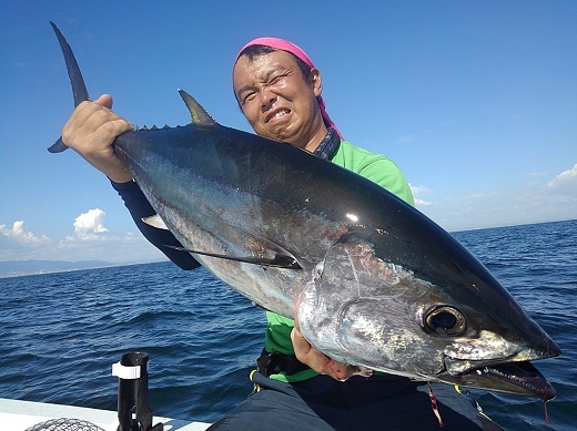 潮は変わり、11時過ぎから再び青物狙い。しかし、これはパッとせず、3~4匹追加して、14時半に断念。納竿とした。